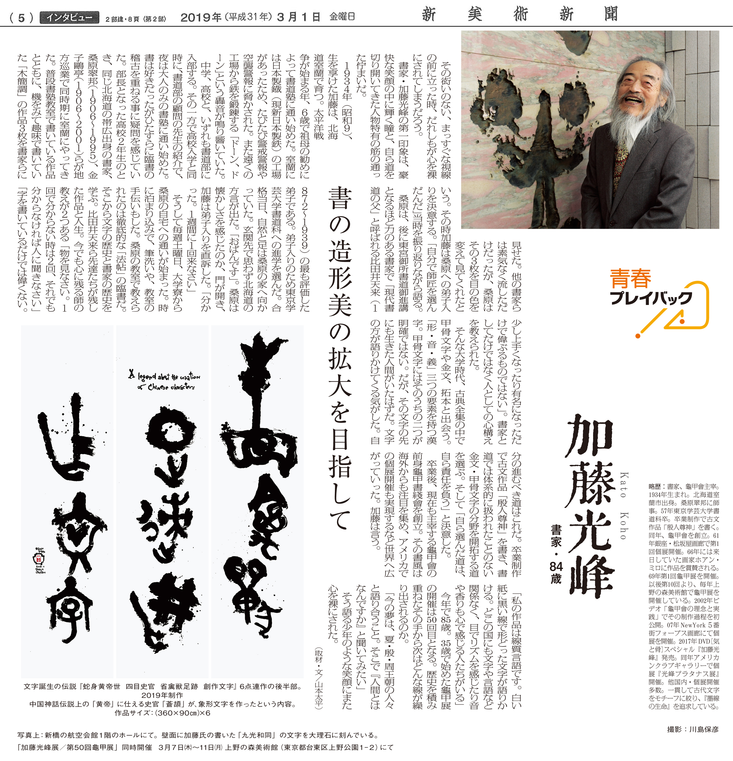 2019年3月1日(金)新美術新聞に加藤光峰インタビュー記事が掲載されました。